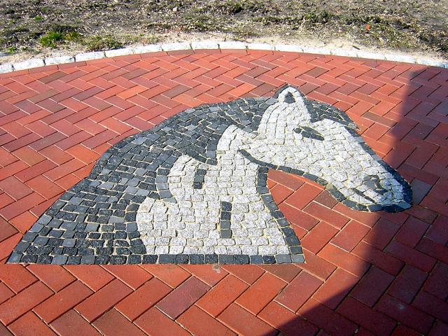 z. B. aus Klinkerpflaster, Randeinfassung aus Granitkleinpflaster,